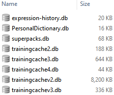 Here you might see a number of databases that start with trainingcache*. These are the files that contain the caches.